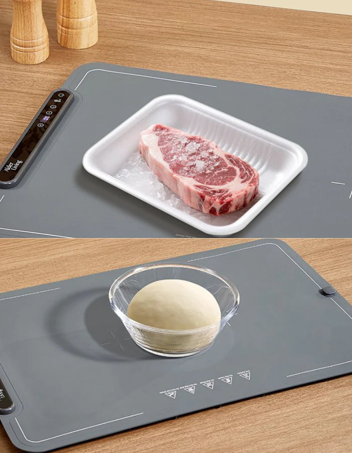 Our warming mat is powered by advanced PTC self-regulating heating film technology, enabling it to warm up in just 10 seconds and reach 100 °C within 12 minutes. The heating film is fully encapsulated in food-grade silicone via high-pressure molding, ensuring safety and durability.